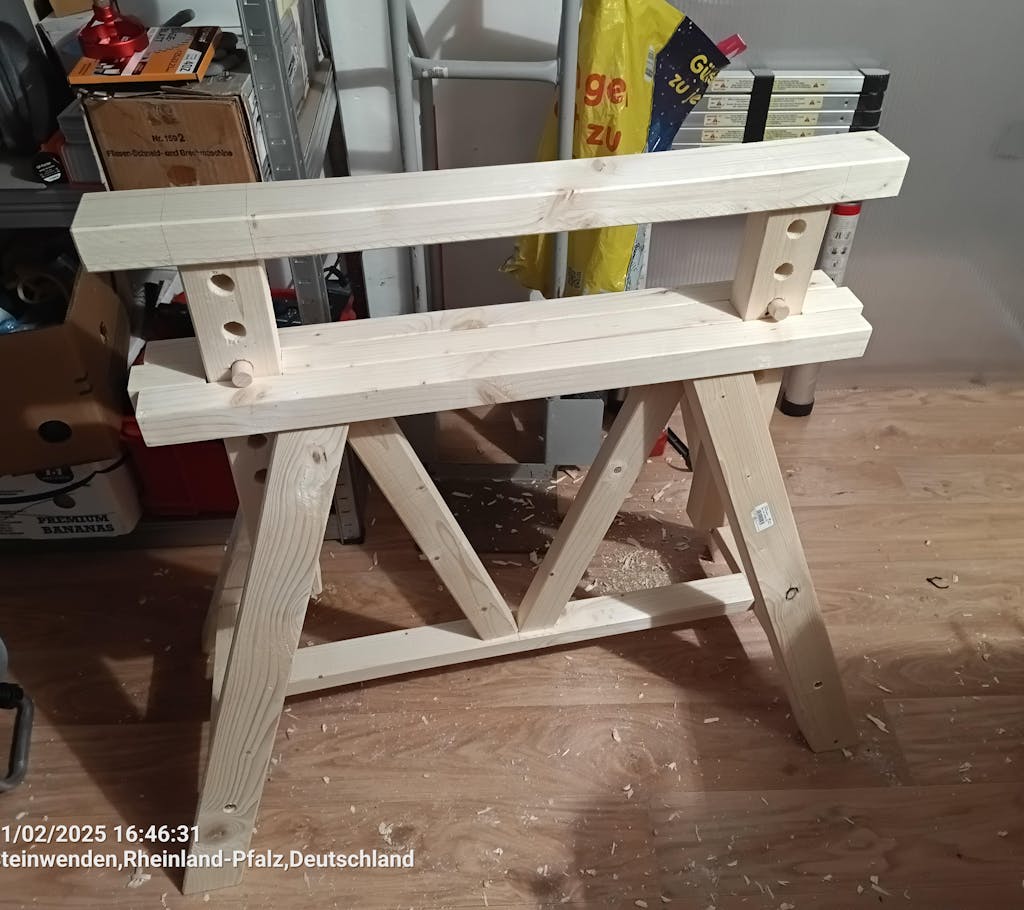 Mit dieser Bauanleitung baust du dir deinen eigenen Sägebock aus Holz. Ideal für Werkstatt, Baustelle und Garten. Der Arbeitsbock ist höhenverstellbar, besonders stabil und bietet dir flexibel eine große Ablage- und Arbeitsfläche, auch wenn wenig Platz zur Verfügung steht. Er eignet sich perfekt zum Sägen, Verleimen, Streichen oder als Erweiterung deiner bestehenden Arbeitsfläche. Dank der durchdachten Konstruktion ist er kippsicher und deutlich stabiler als viele handelsübliche Modelle.