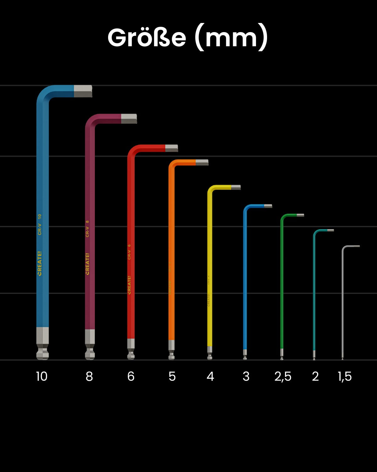Das CREATE! Sechskantschlüssel-Set bestehend aus 9 Schlüsseln darf in keinem Haushalt fehlen.
