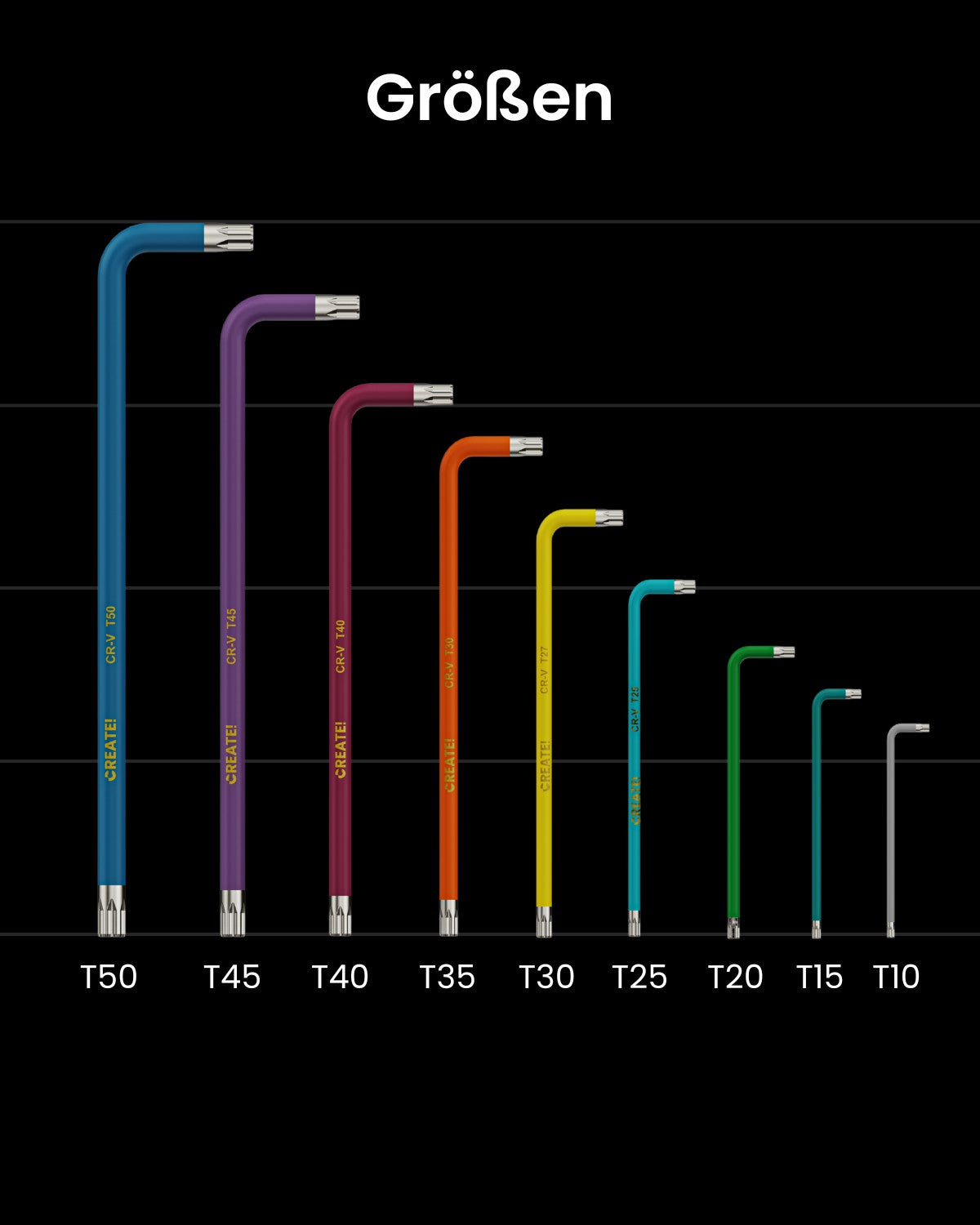 Die CREATE! Torx-Schraubendreher, bestehend aus 9 Stück, dürfen in keinem Haushalt fehlen.