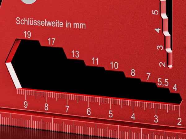 - Schlüsselweitenanzeige für Muttern und Sechskantschrauben