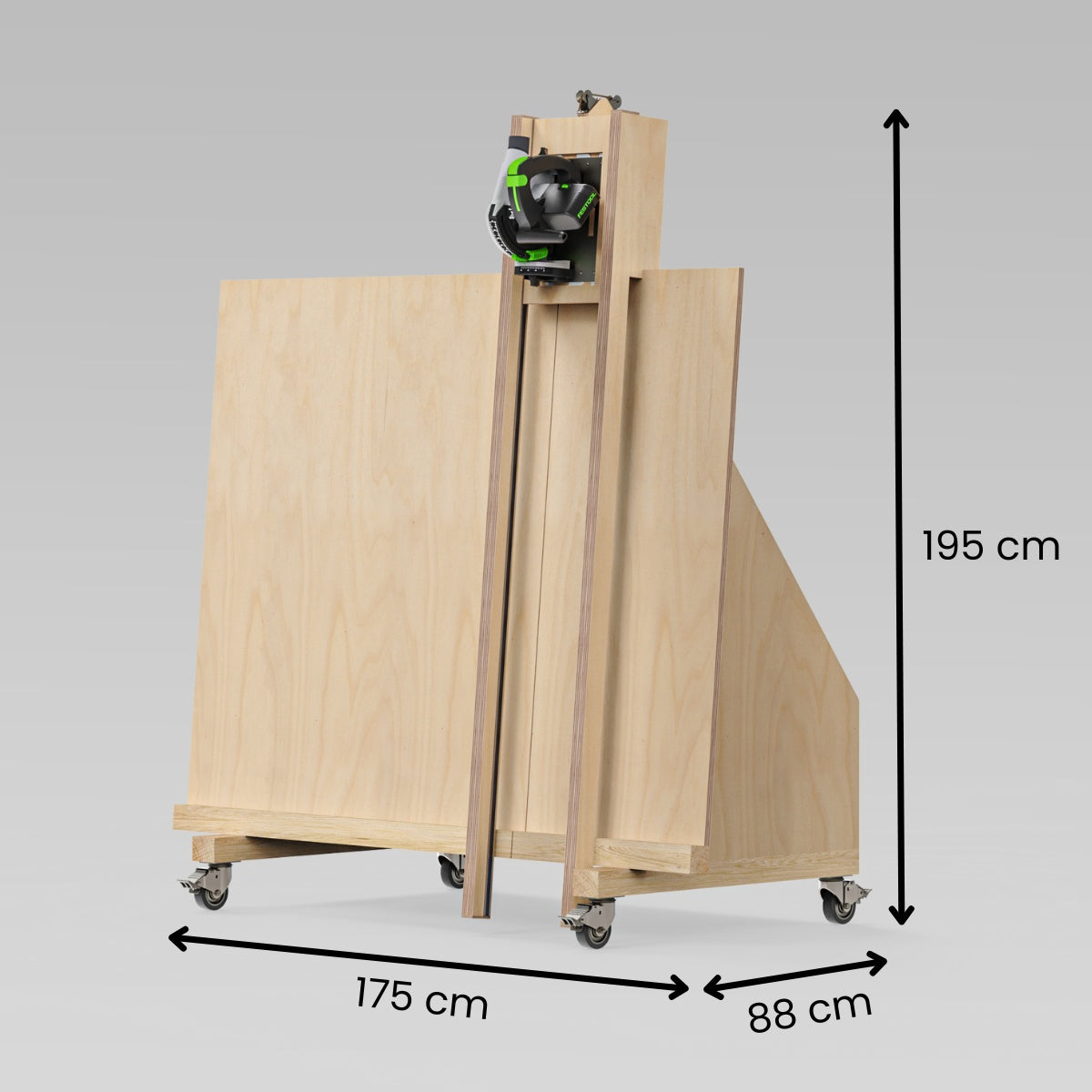 Mit dieser Bauanleitung baust du dir deine eigene Wand-/Plattensäge aus Holz – ideal für Werkstatt, Garage und Heimwerkerprojekte. Die Säge ist präzise, leichtgängig und variabel anpassbar und ermöglicht exakte 90°-Schnitte auch bei großen Platten. Dank Umlenkrolle, Gegengewicht, Rollen und modularer Rückseite ist sie kraftsparend zu bedienen, flexibel einsetzbar und perfekt organisiert.